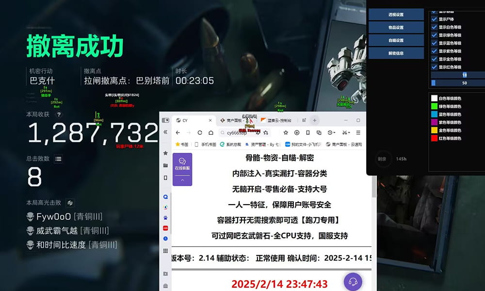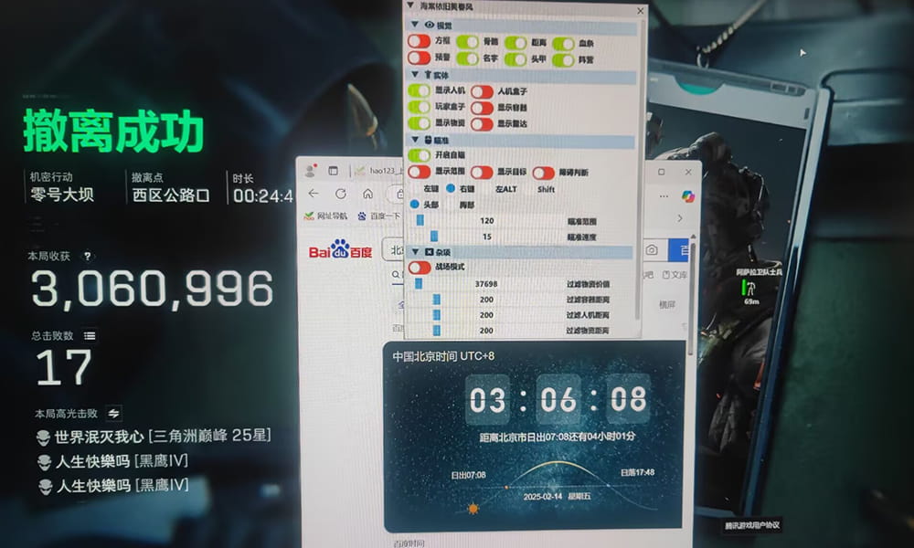 一键启动自动跳跃连段程序(W + 空格组合触发),融合透视物资定位与身法控制,实现高效战场移动